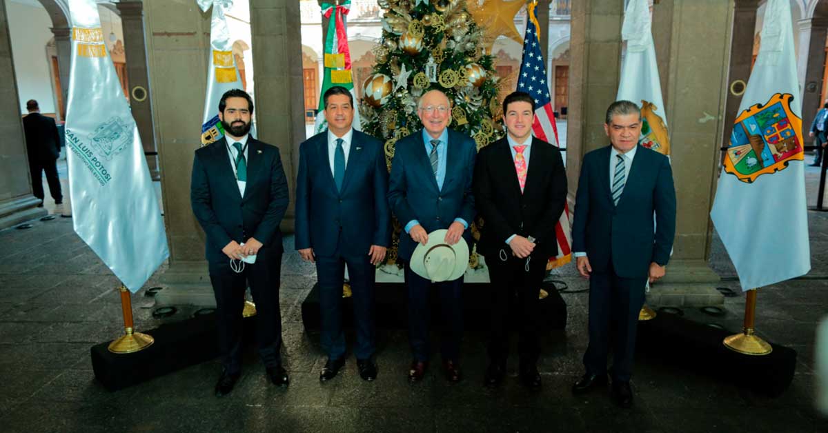 Monterrey, NL.- Los gobernadores de Tamaulipas, Nuevo León, Coahuila y representantes del Gobierno de San Luis Potosí, estrecharon relaciones y realizaron acuerdos para fortalecer la economía entre la región y Estados Unidos, además de ratificar la comunicación y colaboración en materia de seguridad, migración y medio ambiente, durante el primer encuentro entre la Embajada de los Estados Unidos de América y los mandatarios del noreste de México, celebrado este miércoles en el Palacio de Gobierno de Nuevo León.