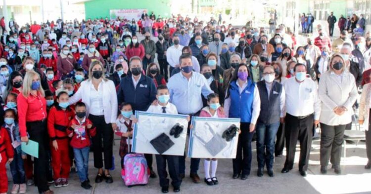 Al evento realizado en la Escuela Primaria “Emma Pérez Ibarra” asistieron Jefes de Sector, Supervisores, personal de la escuela, padres de familia y alumnos beneficiados, entrega que consistió en: zapato, pantalón y camisa para los niños, y zapato, calceta, falda o jumper y blusa para las niñas.