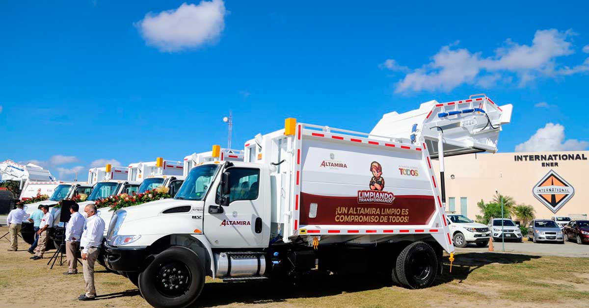 Un día verdaderamente significativo para Altamira se vivió en los patios de la empresa Ener Mantenimiento Integral S.A de C.V, pues fue en este punto donde se llevó a cabo la ceremonia de recepción de los 10 nuevos camiones de basura que adquirió el gobierno municipal, que titula el alcalde, Mtro. Armando Martínez Manríquez y que brindarán con orden y eficacia el servicio de recolección de basura en la ciudad.