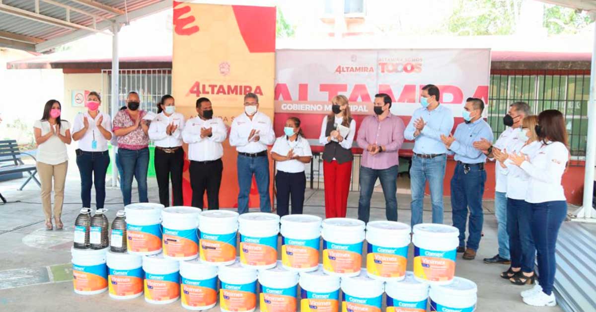 Altamira, Tamaulipas.- Continuando con el programa de apoyo a la educación titulado “Apadrina Una Escuela”, el jefe de la comuna altamirense, Mtro. Armando Martínez Manríquez encabezó el apadrinamiento de una institución educativa más que fue beneficiada con un importante recurso para su infraestructura.