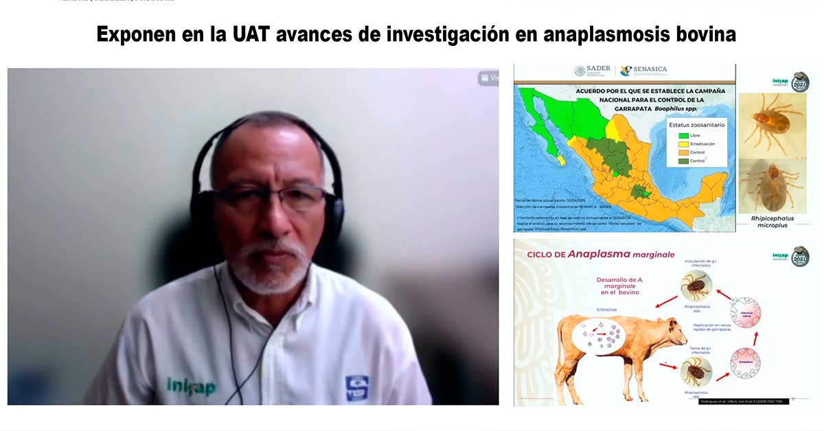 La Universidad Autónoma de Tamaulipas (UAT) desarrolló la conferencia virtual “Anaplasmosis bovina: Una enfermedad difícil, de controlar”, espacio de reflexión en torno a una de las enfermedades que más afecta a la producción del ganado bovino en nuestro país.