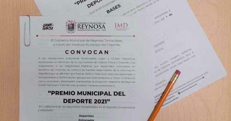 Reynosa, Tamaulipas.- El Alcalde Carlos Peña Ortiz, dio a conocer la convocatoria para la selección y entrega del “Premio Municipal del Deporte 2021” y “Premio al Periodismo Deportivo 2021”, para los más destacados en estas prácticas, mejor atleta, mejor entrenador, equipo, y 5 categorías de trabajo de comunicadores.