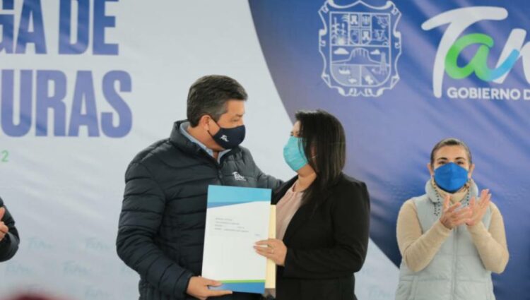 La más reciente entrega de escrituras fue presidida este jueves en Reynosa y Díaz Ordaz por el Gobernador García Cabeza de Vaca, quien otorgó 90 y 208 documentos para igual número de familias, respectivamente.