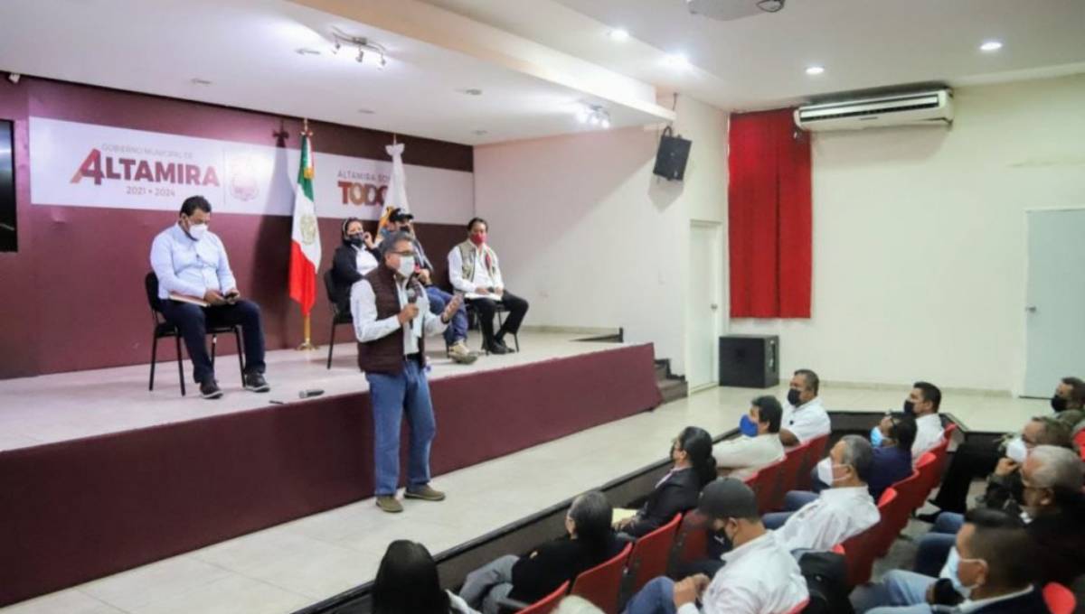 En esta importante reunión, acompañaron al munícipe el delegado de Tránsito, Lic. Santiago Cerecedo Maya; el secretario del Ayuntamiento, Lic. Francisco Pérez Ramírez; la regidora presidenta de la Comisión de Seguridad Vial y Transporte, Brittanya Bache Vega; el regidor Irving Montés Rosales, el gerente general de la COMAPA Altamira, Ing. Omar Hernández Leines; el Director de Obras públicas, Ing. Carlos Tenorio García, así como el director de Desarrollo Urbano, Arq. Luis Gerardo Badillo.