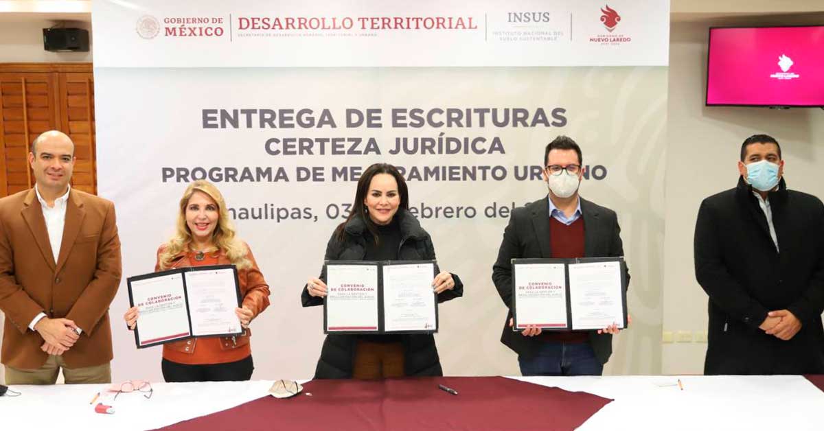 Con el fin de facilitar a las familias neolaredenses los trámites de impuestos y derechos municipales para obtener la certeza jurídica a través de la escritura de propiedad, el Gobierno Municipal firmó un convenio de colaboración con el Instituto Nacional de Suelo Sustentable (INSUS).