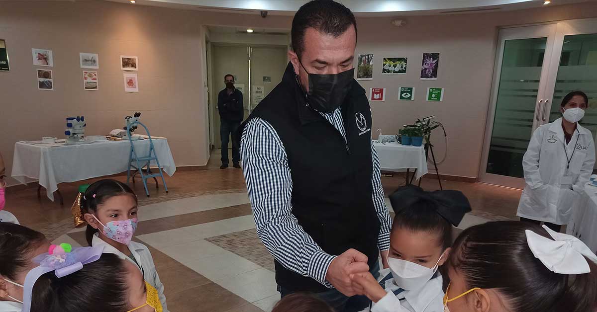 Los trabajos organizados por la Secretaría de Investigación y Posgrado se desarrollaron del 9 al 11 de febrero del 2022 y en la conclusión del programa, el C.P. Guillermo Mendoza Cavazos asistió al taller infantil que realizó el Instituto de Ecología Aplicada (IEA), cuya finalidad fue presentar a un grupo de niñas una serie de temas de investigación de manera amena y con ello despertar su interés en la ciencia.