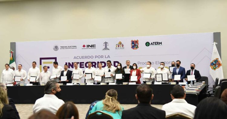 Para garantizar el desarrollo de elecciones con certeza, credibilidad y legitimidad, el Tribunal Electoral del Poder Judicial de la Federación (TEPJF), el Instituto Nacional Electoral (INE), el Tribunal Electoral del Estado de Tamaulipas (TRIELTAM), el Instituto Electoral de Tamaulipas (IETAM) y partidos políticos de esta entidad firmaron el Acuerdo por la Integridad Electoral del Proceso Electoral 2021-2022.