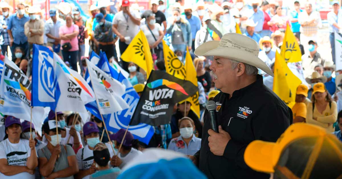 Miquihuana, Tamaulipas.- En la plaza principal de Miquihuana municipio ubicado en el suroeste del estado, llegó el candidato de la coalición “Va por Tamaulipas” César Truko Verástegui donde reafirmó su orgullo de pertenecer a este sector que le ha permitido conocer su problemática.