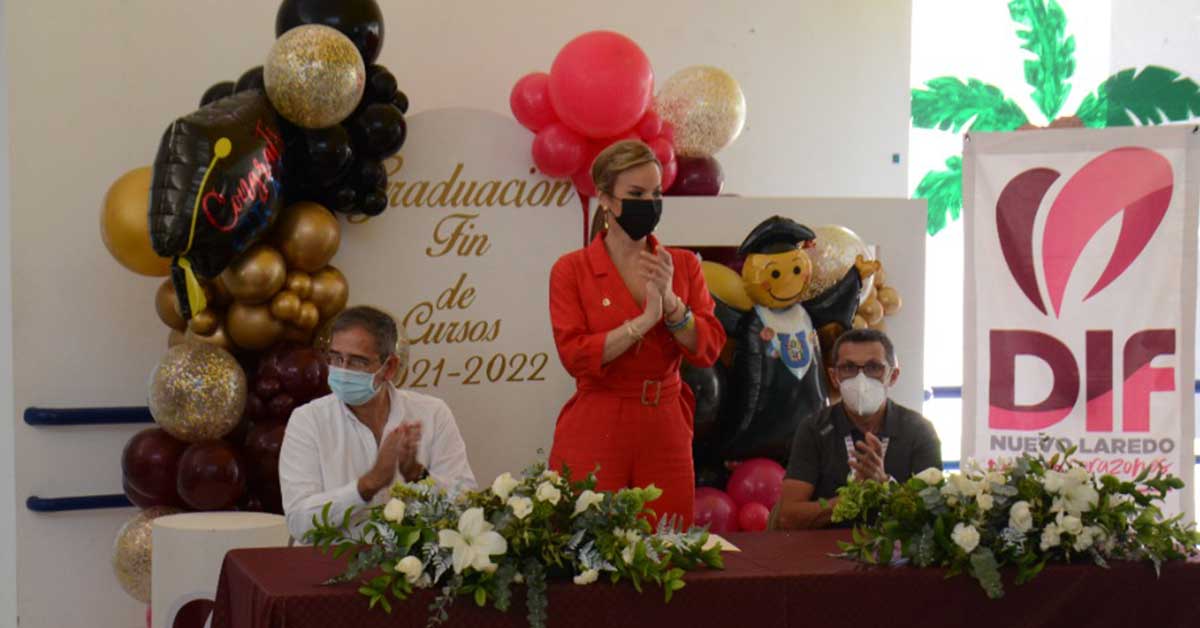La presidenta del Sistema para el Desarrollo Integral de la Familia (DIF) Nuevo Laredo, la señora Claudette Canturosas de Salinas, presidió una emotiva ceremonia de clausura de cursos por parte de los alumnos de la Guardería Especial del Centro de Rehabilitación Integral (CRI) en donde se compartieron los logros de cada uno de los niños.