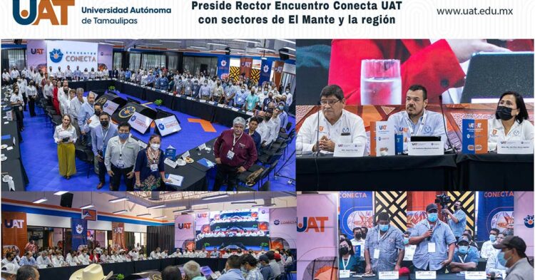 El Rector C.P. Guillermo Mendoza Cavazos presidió en Ciudad Mante el Encuentro Conecta, que tiene como finalidad fortalecer los lazos de la Universidad Autónoma de Tamaulipas (UAT) con los sectores sociales, públicos y productivos para generar acuerdos, iniciativas e innovaciones que contribuyan en el desarrollo regional de la entidad.