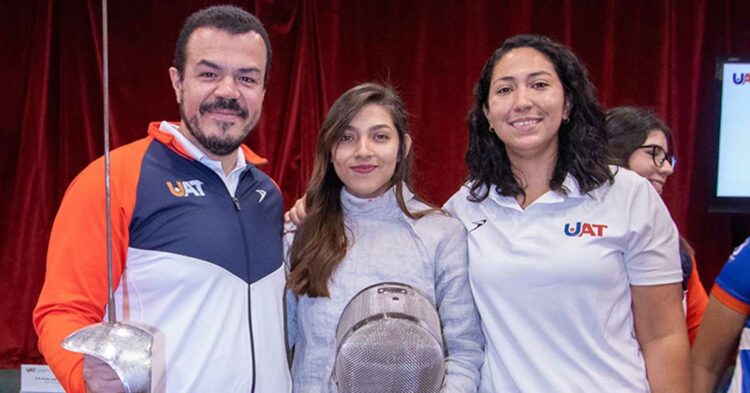 Dentro del deporte universitario, hay mujeres que se destacan en sus respectivas disciplinas y ponen en alto el nombre de la Universidad Autónoma de Tamaulipas (UAT); muestra de ello es la estudiante de licenciatura Alejandra Yamile Badillo Varela, quien recientemente obtuvo medalla de oro en la disciplina de esgrima en la Universiada Nacional 2022.