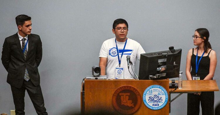 Alejandro González Olvera, de la FI, de sexto semestre de Ingeniería Civil, expuso que la contienda se realizó en dos etapas: una regional (que ganaron previamente en mayo pasado en Texas y donde se enfrentaron a más de 20 universidades de Estados Unidos y México), y ahora esta mundial.