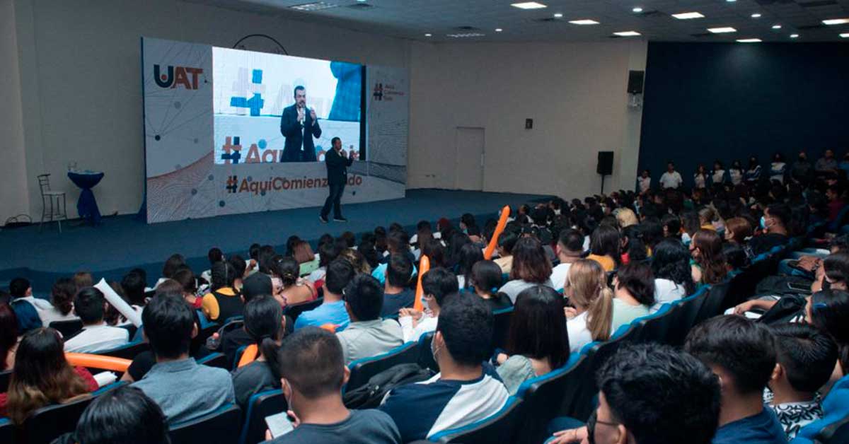 Con el apoyo de videos institucionales, presentó a los estudiantes una serie de temas; entre estos, la importancia del factor humano en la comunidad universitaria, los diversos servicios que la UAT les ofrece, así como espacios para su participación y desarrollo; las acciones para su formación y superar los retos como egresados, además de los programas de apoyo en la meta de entregar a la sociedad egresados exitosos.