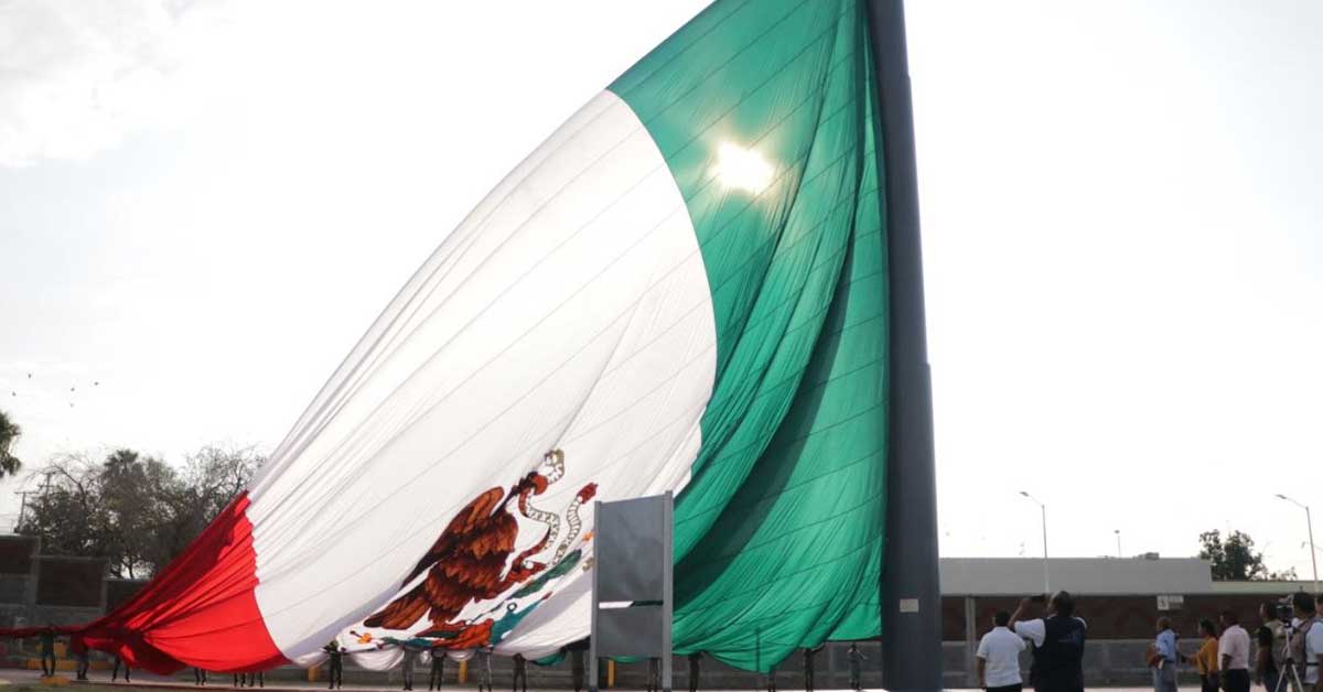 Con esa finalidad, en una ceremonia alusiva al mes patrio, elementos del Décimo Sexto Regimiento de Caballería Motorizado, en coordinación con autoridades de los tres niveles de Gobierno, realizaron el izamiento a la bandera en la mencionada Plaza Morelos donde se encuentra el también enorme mástil.
