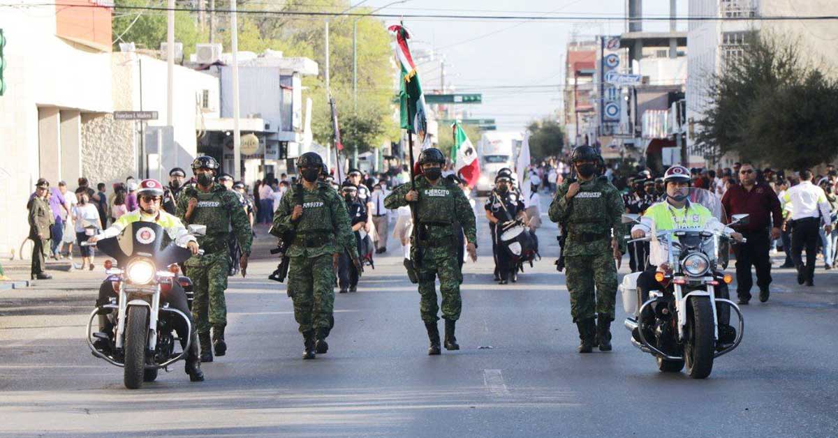 El desfile arrancó después de los honores a la Bandera en la Plaza Cívica Municipal por parte del Gobierno Municipal, en coordinación con el Instituto Tecnológico de Nuevo Laredo y de la Junta Municipal de Reclutamiento y Fomento Cívico.