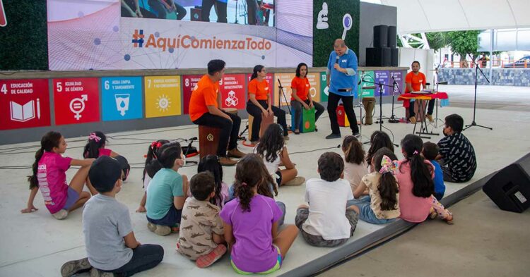 Tras la explicación, los niños asistentes a la conferencia pudieron participar de un ensamble de percusiones y utilizar de manera práctica los diversos instrumentos y artefactos proporcionados por el investigador para concretar una pieza musical.