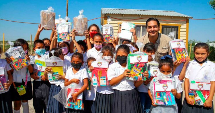 Los alumnos de la escuela primaria Pablo Latapí, recibieron con alegría la visita del Alcalde Carlos Peña Ortiz, quien entregó paquetes de útiles escolares e insumos sanitarios para el ingreso a las aulas a los estudiantes, a quienes invitó a continuar estudiando hasta logar una meta.