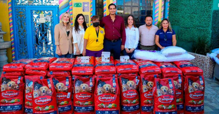 El Presidente Municipal, Carlos Peña Ortiz, entregó una donación de 75 bultos, de 15 kilogramos de alimento para mascotas, a la asociación: Fundación de Rescate y Adopción de Mascotas, FRYAM, en su refugio de la colonia Fuentes Coloniales, este jueves 29 de septiembre.