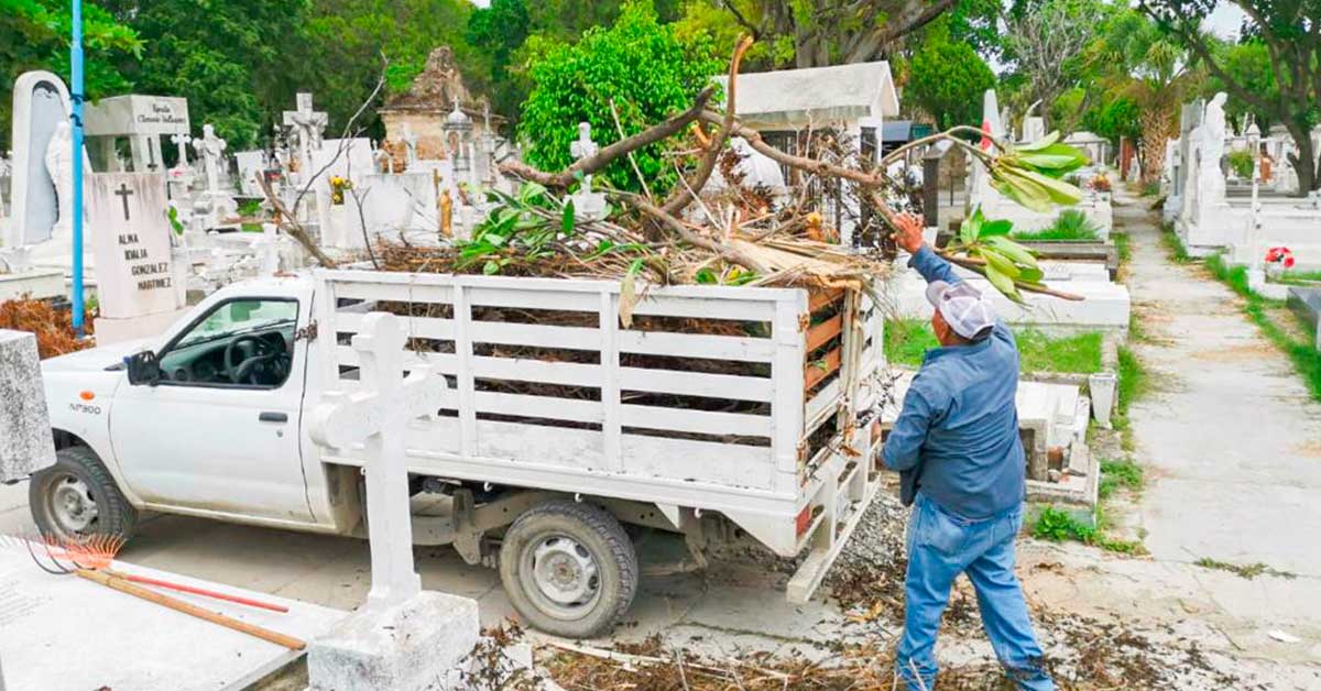 Las labores de limpieza iniciaron en los panteones De la Cruz, Cero Morelos y La Libertad, a cargo de cuadrillas del Departamento de Servicios Complementarios, de dónde se han retirado toneladas de basura, escombro y maleza.