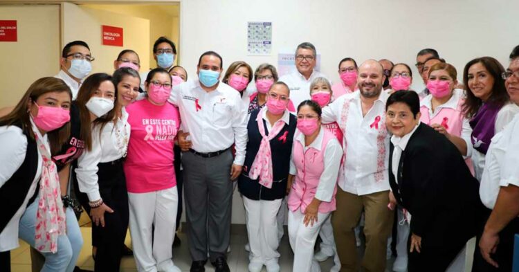 CIUDAD VICTORIA, TAMAULIPAS.- Con acciones orientadas a sensibilizar a la sociedad sobre la importancia de la detección temprana y el tratamiento oportuno, el gobierno de la transformación que encabeza Américo Villarreal Anaya, puso en marcha las actividades del mes de la Lucha contra el Cáncer de mama en el Centro Oncológico de Tamaulipas y el Hospital Civil de Ciudad Victoria.
