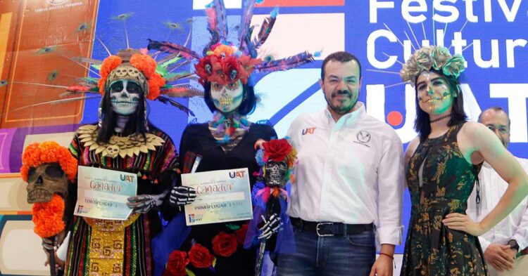 En el marco de la clausura del Festival Cultural Universitario, que se realizó en el Campus Victoria, el C. P. Guillermo Mendoza Cavazos, rector de la Universidad Autónoma de Tamaulipas (UAT), reconoció el talento y la creatividad de los estudiantes que participaron en los concursos organizados con motivo del Día de Muertos.