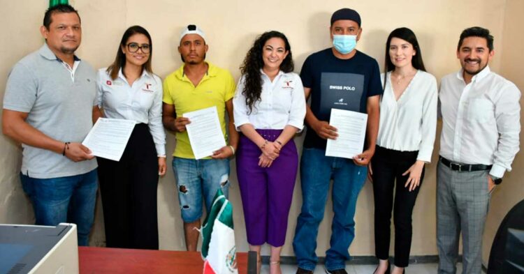 Tampico, Tamaulipas. – A través del Subprograma de Movilidad Laboral del Servicio Nacional del Empleo, la secretaria del Trabajo en Tamaulipas Olga Sosa Ruiz entregó la documentación a tres tampiqueños que fueron seleccionados para trabajar en puestos de procesamiento de pescados y mariscos en Quebec, Canadá.
