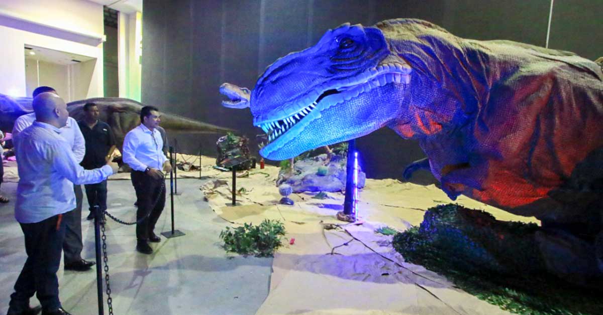 Gattás Báez interactuó con los alumnos al participar en la exposición del personal de la empresa referente a la existencia de los dinosaurios, representados en escalas reales y de fósiles encontrados en distintas partes del país.