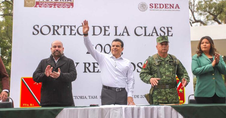 Cd. Victoria. – El Presidente Municipal, Eduardo Gattás Báez, participó este domingo en el sorteo del Servicio Militar Nacional de la clase 2004, donde participaron mil 800 jóvenes de esta generación y remisos interesados en cumplir con la obligación ciudadana.