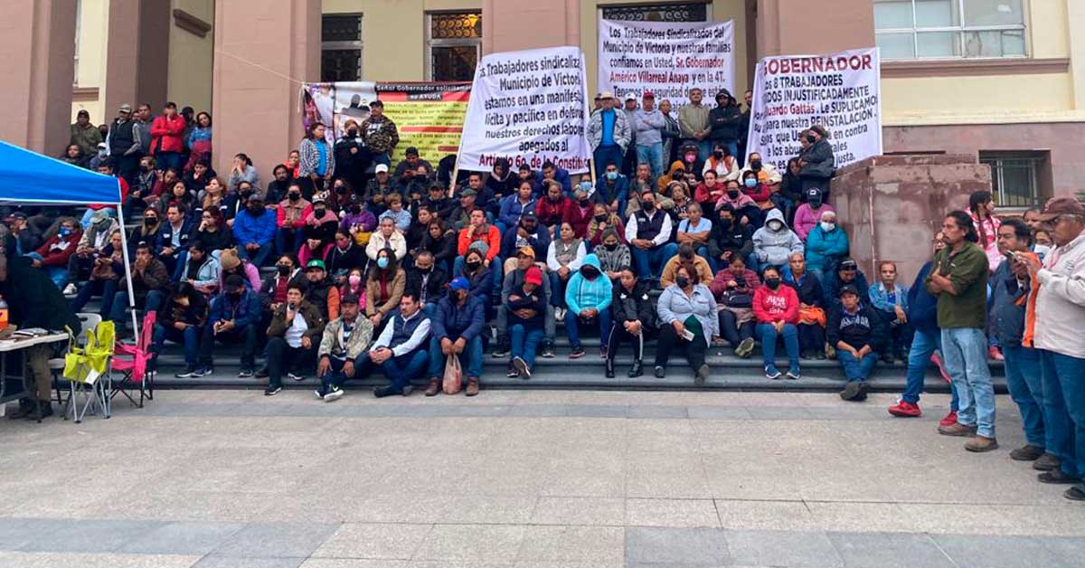 El Sindicato de Trabajadores del Municipio de Victoria denunció la negativa del alcalde a dialogar en busca de una solución justa y apegada a la ley y de querer imponer, de manera unilateral, nuevas Condiciones Generales de Trabajo. “Busca despojarnos de todas las conquistas laborales, como estímulos semestrales, becas escolares para hijas e hijos, apoyos para vivienda, transporte, despensa, la entrega de uniformes y herramientas de trabajo.