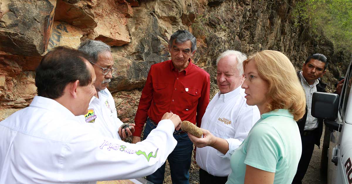 Hasta aquí, a la mina abierta de serpentina, en el ejido Vicente Guerrero, del municipio de Victoria, llegó el gobernador Américo Villarreal Anaya, acompañado por los directivos del Grupo Semper, empresa que realiza los estudios de exploración de materiales y minerales para uso industrial.