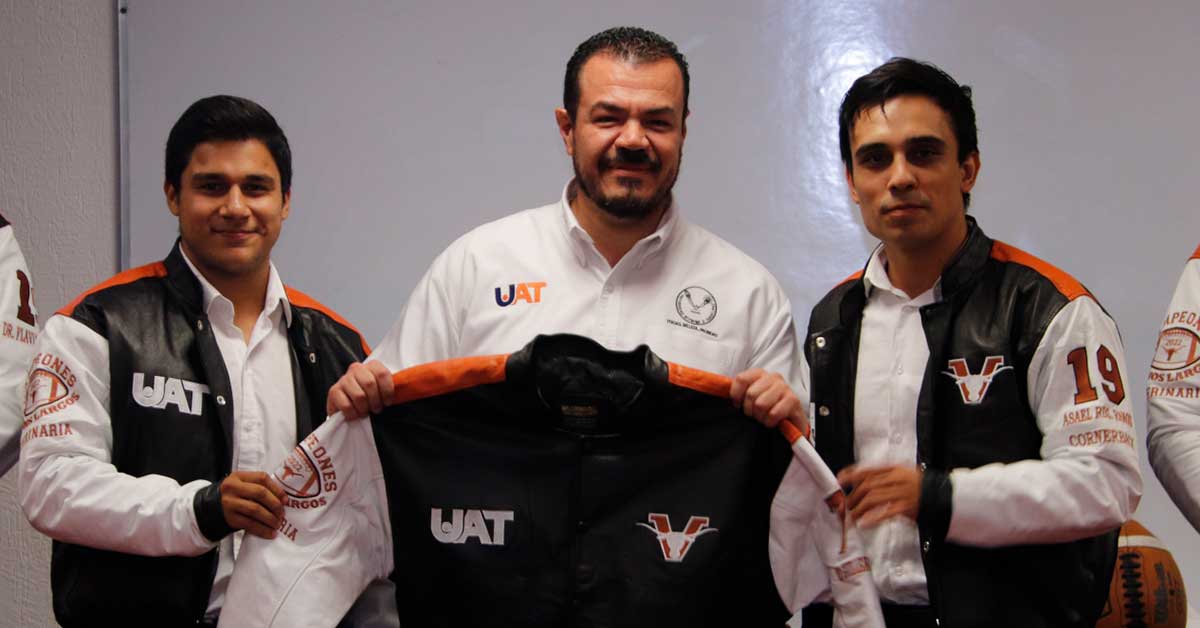 El C. P. Guillermo Mendoza Cavazos, rector de la Universidad Autónoma de Tamaulipas, entregó las chamarras conmemorativas al equipo Cuernos Largos de la Facultad de Medicina Veterinaria y Zootecnia Dr. Norberto Treviño Zapata (FMVZ), por haber conseguido el campeonato de la Liga Universitaria de Futbol Americano (LUFAUAT) en su edición 2022.