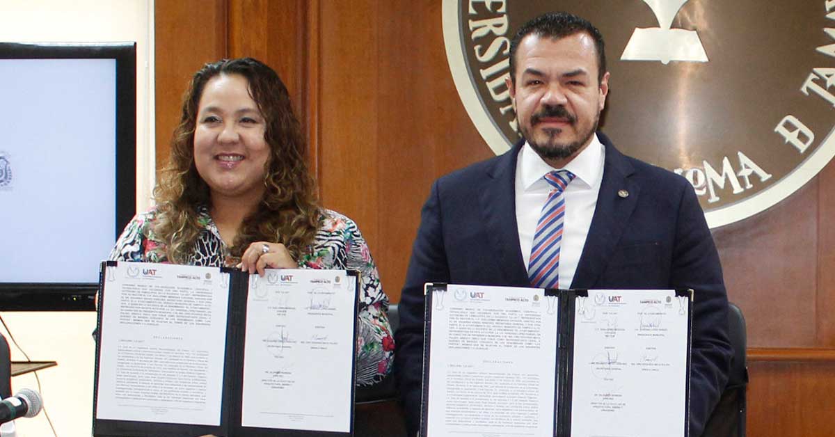 La Universidad Autónoma de Tamaulipas (UAT) firmó un convenio marco de colaboración en materia académica, científica y tecnológica con el Ayuntamiento de Tampico Alto, Veracruz, con la finalidad de reforzar los proyectos que realizan investigadores, docentes y estudiantes universitarios en las comunidades de este municipio.