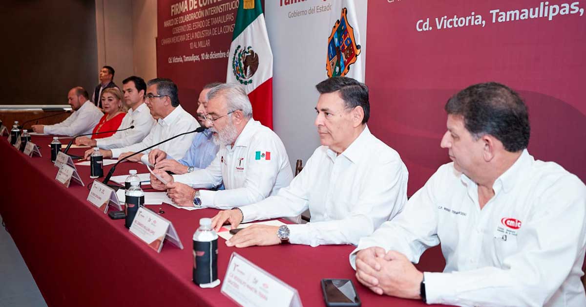 En dicho evento donde asistió el presidente nacional de la CMIC Francisco Javier Solares Alemán, Gerardo Holguín López, presidente de CMIC Tamaulipas y Rodolfo Terán Saucedo, presidente de la Cámara de esta ciudad capital, se protocolarizó la firma de este importante acuerdo y se expuso el propósito y el compromiso de cada uno de los actores de la construcción de Tamaulipas.
