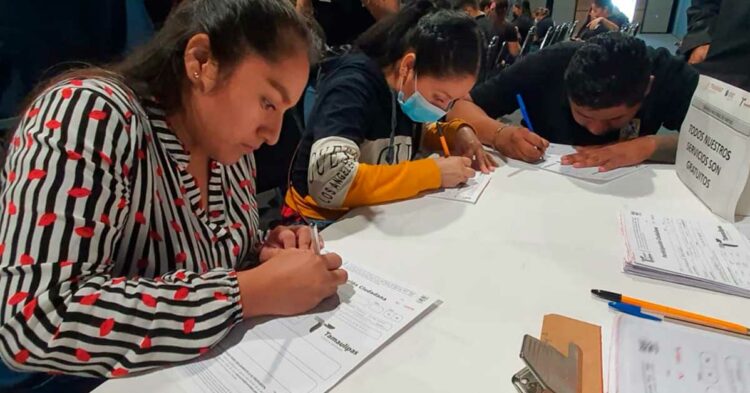 Reynosa, Tamaulipas.- Cientos de jóvenes universitarios participaron de la consulta popular “Tamaulipas se Transforma” del Plan Estatal de Desarrollo 2023-2028, que se realiza en todo el estado para recabar las propuestas y puntos de vista, de todos los sectores de la sociedad, contribuyendo en la integración del documento que regirá el rumbo de la entidad en los próximos seis años, bajo el liderazgo del gobernador Américo Villarreal Anaya.