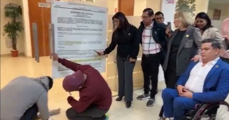 Una vez que concluyeron los trabajos legislativos, los diputados de MORENA se dirigieron a tomar posesión de la oficina de la presidencia de la Jucopo pero la encontraron encadenada por dentro.