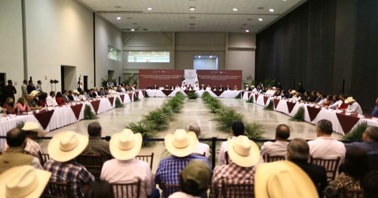 En un evento realizado la tarde del viernes, que tuvo como sede el Polyforum y donde se dieron cita representantes de diferentes organizaciones agrícolas y ganaderas, el mandatario destacó que las instancias federales, estatales y municipales son corresponsables de la productividad del campo y deben contribuir al gran objetivo de la autosuficiencia alimentaria, garantizando el acceso incluyente a alimentos.