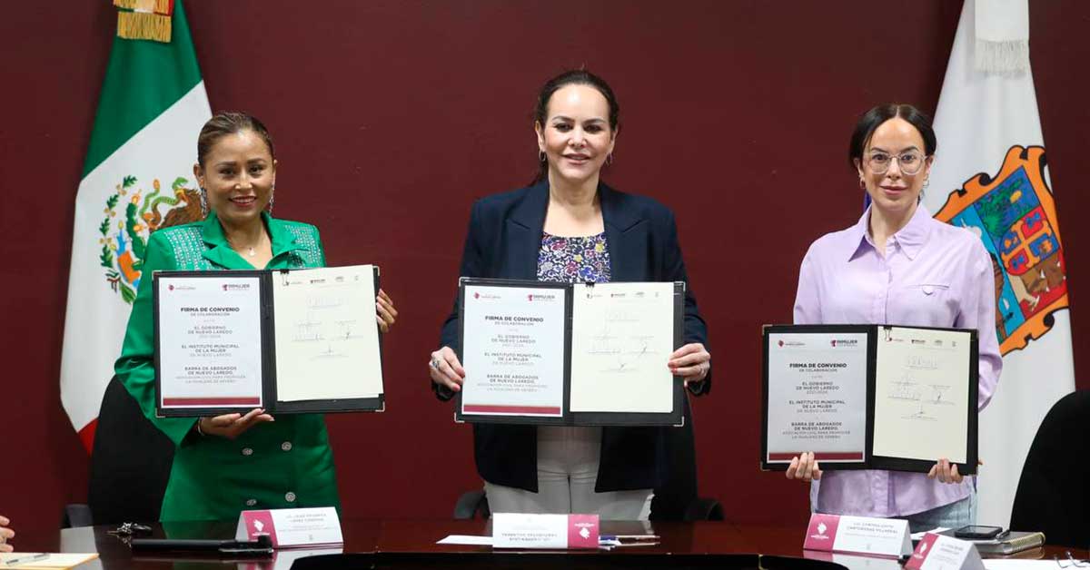Nuevo Laredo, Tamaulipas.- En el marco de las actividades por el Día Internacional de la Mujer, se firmó un convenio de colaboración entre el Instituto Municipal de la Mujer (INMUJER) y la Barra de Abogados de Nuevo Laredo para activar programas y proyectos que tengan como objetivo la capacitación, el intercambio de servicios e información en beneficio de las neolaredenses.