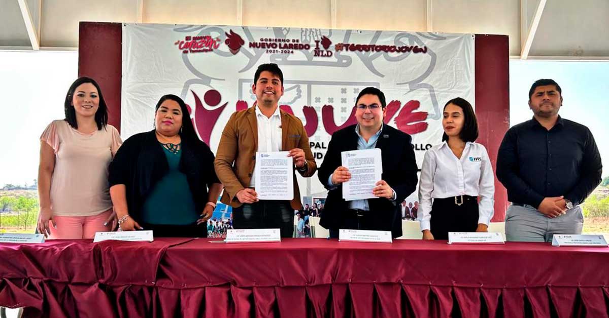 Nuevo Laredo, Tamaulipas.- Con la finalidad de abrir el abanico de oportunidades educativas para los jóvenes, el Instituto Municipal para el Desarrollo de la Juventud (IMJUVE Nuevo Laredo) firmó un convenio de colaboración con el Instituto Humanístico de la Salud (IHS).