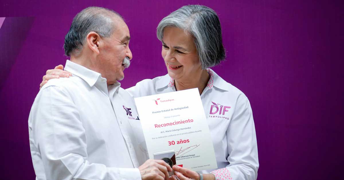 Ciudad Victoria, Tamaulipas.- Como un reconocimiento al espíritu de servicio y vocación, el Sistema DIF Tamaulipas que preside la doctora María Santiago de Villarreal, entregó el premio estatal de antigüedad a personal que durante 20, 25, 30, 35, 40 y 45 años respectivamente, han laborado dentro del servicio público en esta institución de asistencia social.