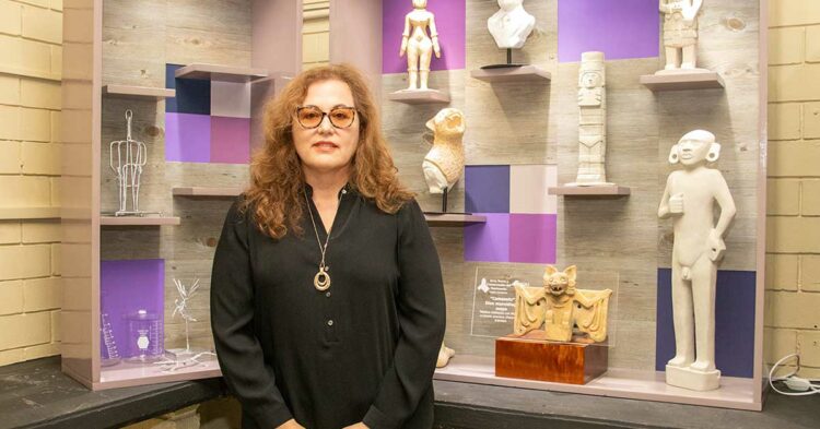“Tenemos réplicas escultóricas del patrimonio mesoamericano de diferentes zonas culturales o arqueológicas que hemos realizado en este laboratorio. Es muy importante mencionar que todas estas piezas las hicimos con una masa de nuestra propia creación, esa masa está en proceso de patente”.