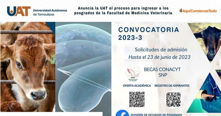 La Universidad Autónoma de Tamaulipas, a través de la Facultad de Medicina Veterinaria y Zootecnia Dr. Norberto Treviño Zapata (FMVZ-UAT), tiene abierto el proceso de admisión de los programas de posgrado, cuya fecha límite para la recepción de solicitudes es el 23 de junio de 2023.