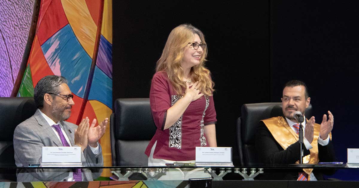 Al asistir como representante de la Secretaría de Educación Pública (SEP) al primer informe del rector Guillermo Mendoza Cavazos, la directora general de Educación Superior Universitaria e Intercultural (DGESUI), Dra. Carmen Enedina Rodríguez Armenta, afirmó que la Universidad Autónoma de Tamaulipas (UAT) es ejemplo nacional en materia de cobertura de educación superior.
