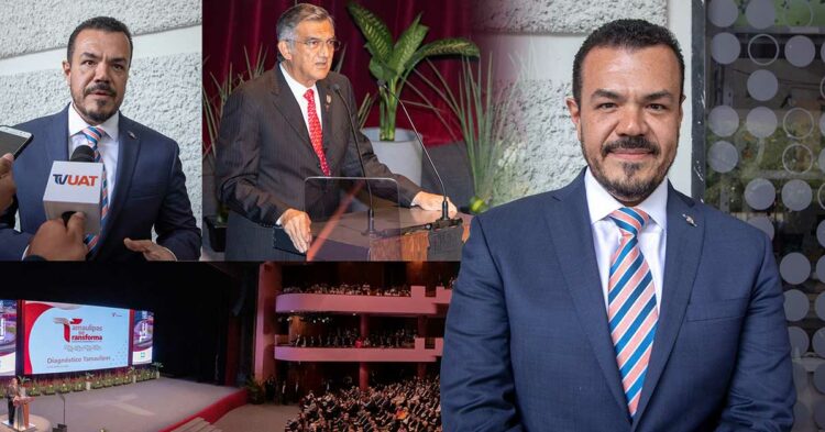 El C. P. Guillermo Mendoza Cavazos destacó su reconocimiento a las políticas estratégicas del gobernador Américo Villarreal Anaya y reafirmó el compromiso de la Universidad Autónoma de Tamaulipas (UAT) de sumar sus esfuerzos a las prioridades del Plan Estatal de Desarrollo (PED) 2023-2028 para lograr la transformación de Tamaulipas.