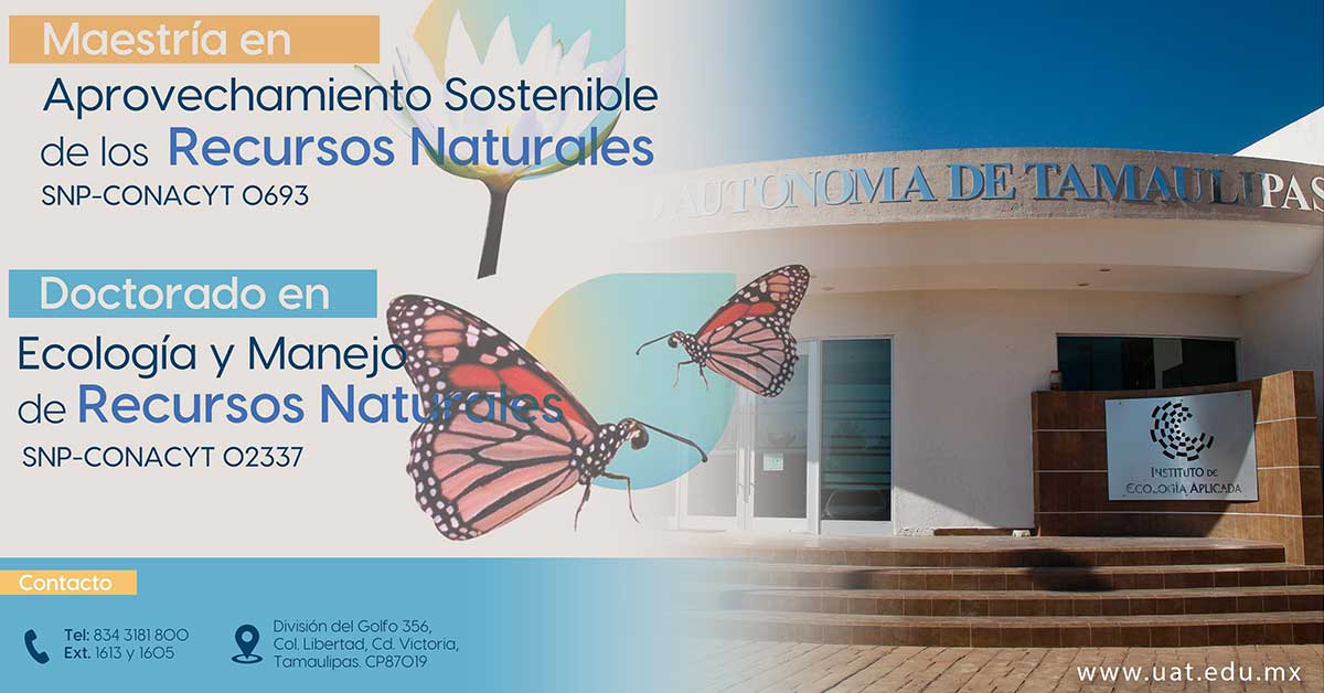 La Universidad Autónoma de Tamaulipas (UAT), a través de los posgrados que imparte el Instituto de Ecología Aplicada (IEA), ofrece la oportunidad de estudiar y desarrollar investigación especializada en la solución de problemáticas del medioambiente y el manejo sustentable de los recursos naturales.
