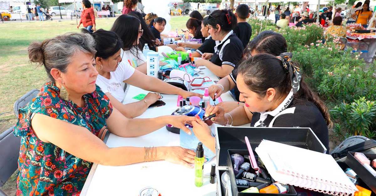 Presentaciones artísticas de solistas y grupos locales, así como la aplicación gratuita de gelish, maquillaje y peinado, además de un curso sin costo de aplicación de pestañas y una rifa de premios, fue lo que las jefas de familia pudieron disfrutar durante el bazar.