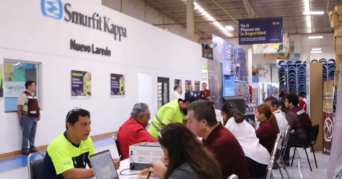 Nuevo Laredo, Tamaulipas.- Con el firme compromiso de acercar los programas del gobierno de Nuevo Laredo a la población, dependencias municipales se trasladaron a la empresa “Smurfit Kappa” para brindar diferentes apoyos y servicios a los cientos de trabajadores.