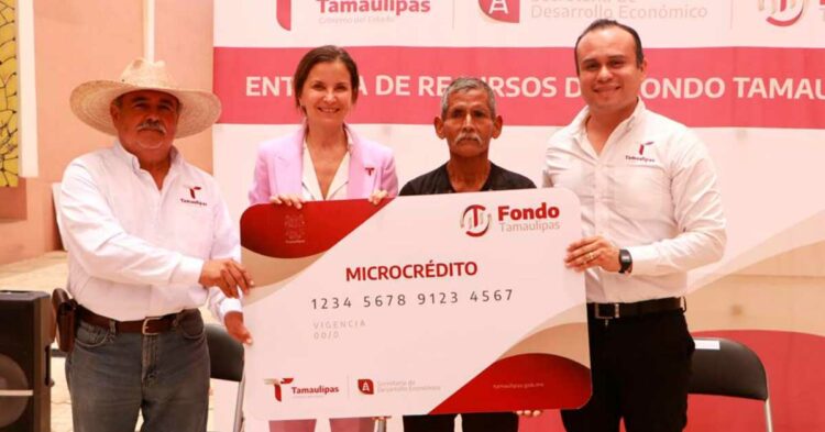 Ninfa Cantú Deándar estuvo acompañada del presidente municipal de Tula, Antonio Leija Villarreal y del director de Microcrédito del Fondo Tamaulipas, Valentín De la Cruz.