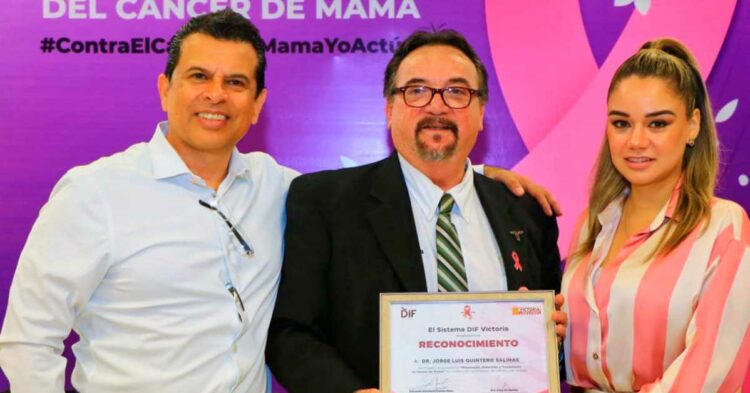 Reconoció el apoyo del alcalde de Victoria Eduardo Gattás Báez en estas acciones que realizan de manera conjunta autoridades estatales y municipales para concientizar sobre la importancia de la prevención y detección oportuna del cáncer de mama.