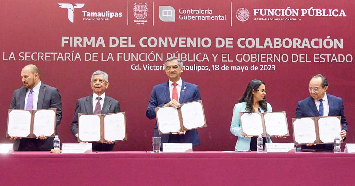 Ciudad Victoria, Tamaulipas.- El Gobierno de Tamaulipas y la Secretaría de la Función Pública (SFP) firmaron un convenio de colaboración para compartir con la entidad las licencias de uso de cinco plataformas informáticas para fortalecer el control interno, la rendición de cuentas y la transparencia gubernamental.