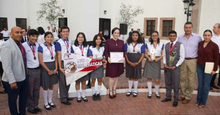 Nuevo Laredo, Tamaulipas.- Luego de ganar el Cuarto Torneo Matemático Inter COBAT 2023, estudiantes del COBAT 18 de Nuevo Laredo entregaron a la alcaldesa Carmen Lilia Canturosas Villarreal, un reconocimiento por haberlos apoyado en el logro de esta meta.